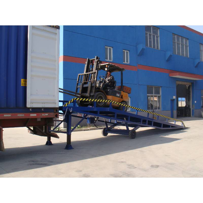 移動式登車橋廣泛用于無裝卸設(shè)備的貨臺及流動裝卸場所,是與叉車配合使用的貨物裝卸輔助設(shè)備。借助移動式登車橋,叉車能直接駛?cè)肫嚰b箱內(nèi)部進行批量裝卸作業(yè)。只需單人操作,不需動力電源,即可實現(xiàn)貨物的安全快速裝卸